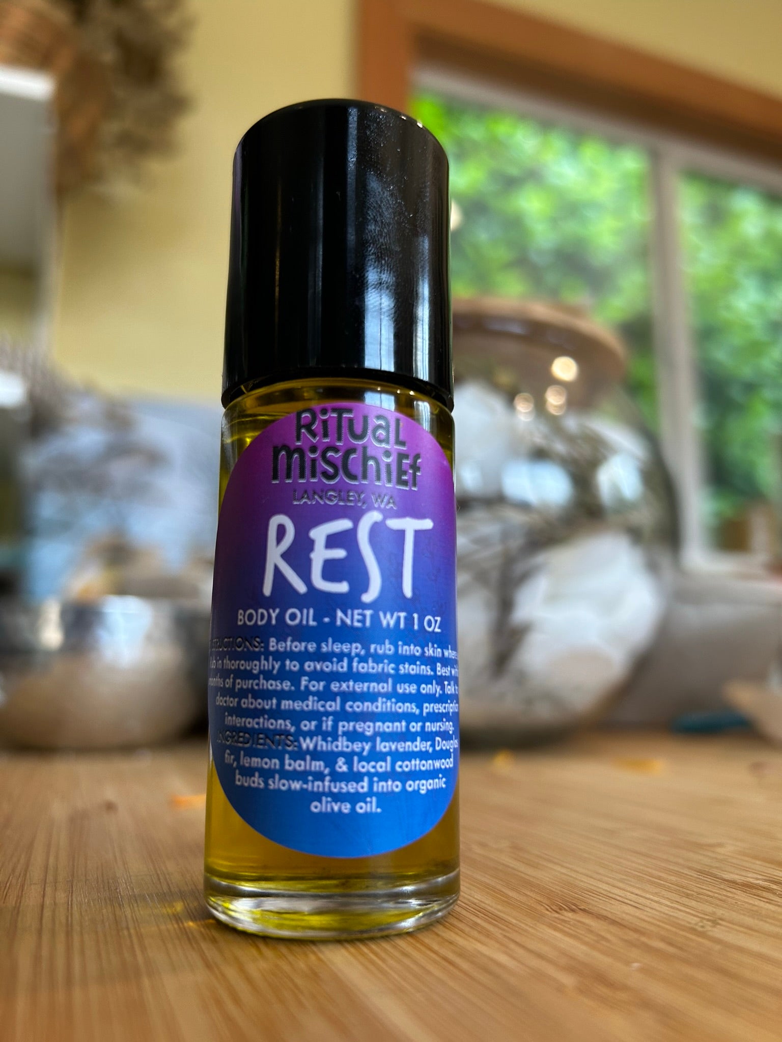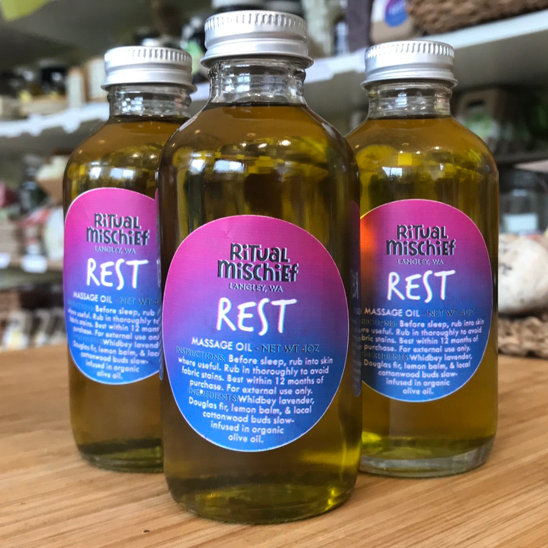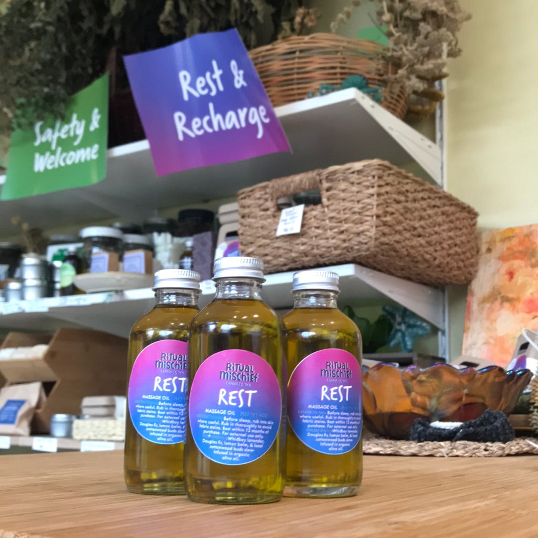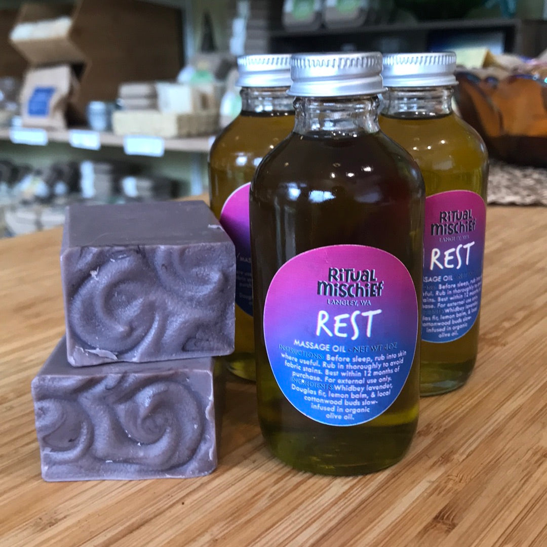 Tip: For added awesomeness, pair this massage oil with either our Rest soap, Forest Bathing soap, a Relax & Recharge lotion bar. Rub in the body oil really well to avoid fabric stains! After using the oil, you can also bathe or just wash your hands or face with these gentle, relaxing soaps that are perfect for bedtime or before naps. Take a deep breathe in, aware that you are loved by every flower petal, plant, and tree branch on earth. Hard times call for new rituals. These are some of ours.